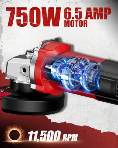 Powerful Grinder Tool, No Excessive Vibration: Equipped with 6.5 Amps motor with 750W max output power, this metal grinder can produce no-load speed of 11500 RPM, well-balanced, for most light duty HOME projects