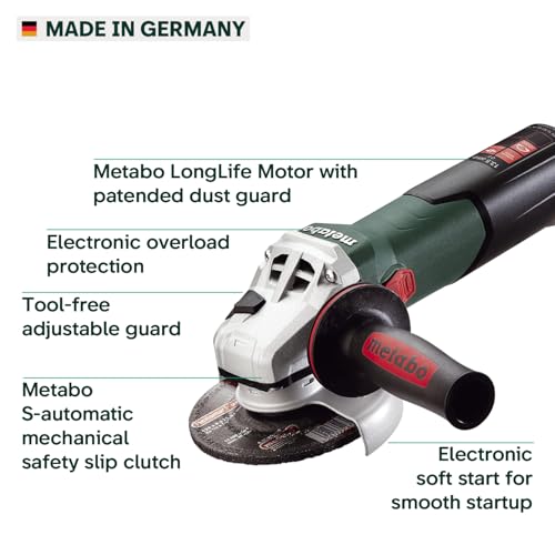 Metabo WEV15-125 HT Lock-On 13.5 Amp 2,800-9,600 rpm Angle Grinder with Electronics and High Torque, 4.5″/5″