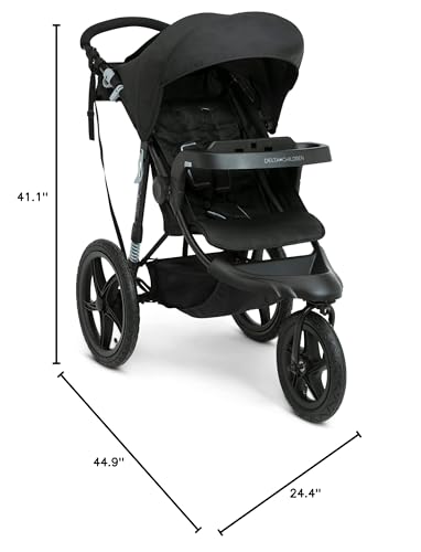 Delta Children Apollo Jogging Stroller – Shock Absorbing Frame with Large Canopy & Recline – Car Seat Compatible, Black