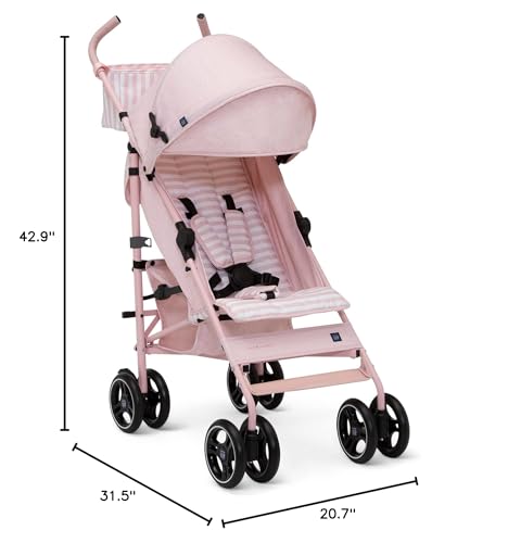 babyGap Classic Stroller – Lightweight Stroller with Recline, Compact Fold & Removable Parent Organizer – Made with Sustainable Materials, Pink Stripes