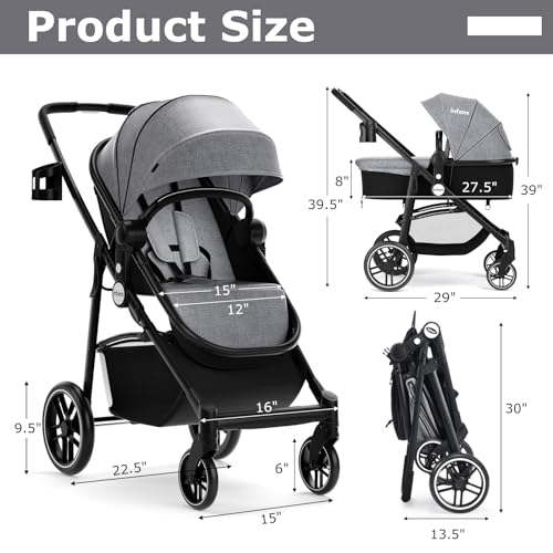 Be the first to review “INFANS 2 in 1 Baby Stroller, High Landscape Infant Stroller & Reversible Bassinet Pram, Foldable Pushchair with Adjustable Canopy, Cup Holder, Storage Basket, Suspension Wheels (Grey)”