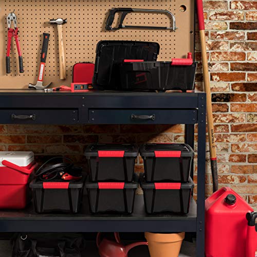 IRIS USA 13 QT Plastic Storage Box with Lid and Latches – 6 Pack – BPA-Free, Garage Organizing Solution, Durable Nestable Stackable Containers, Secure Pull Handle – Black