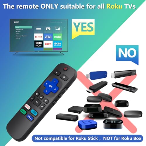 【TV SPECIFICATION】The remote ONLY suitable for all Roku TVs. It is NOT compatible with any for Roku Stick,NOT for Roku Streaming Stick,NOT for Roku Box 1/2/3/4(HD/LT/XS/XD),NOT for Roku Ultra,NOT for Roku Express,NOT for Roku Premiere ,NOT for Roku Player
