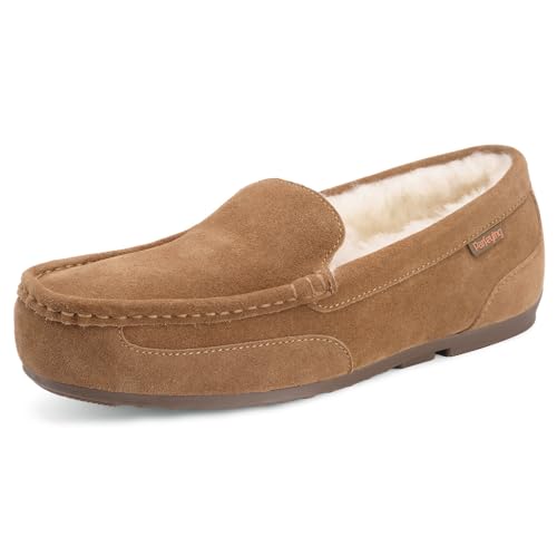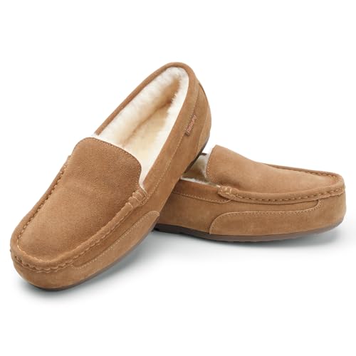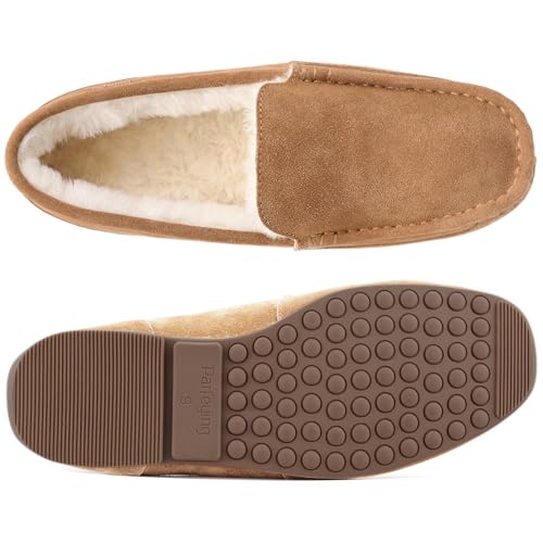 Parfeying Men’s Indoor Outdoor Sheepskin Moccasins Slippers Memory Foam Driving Style Shoes