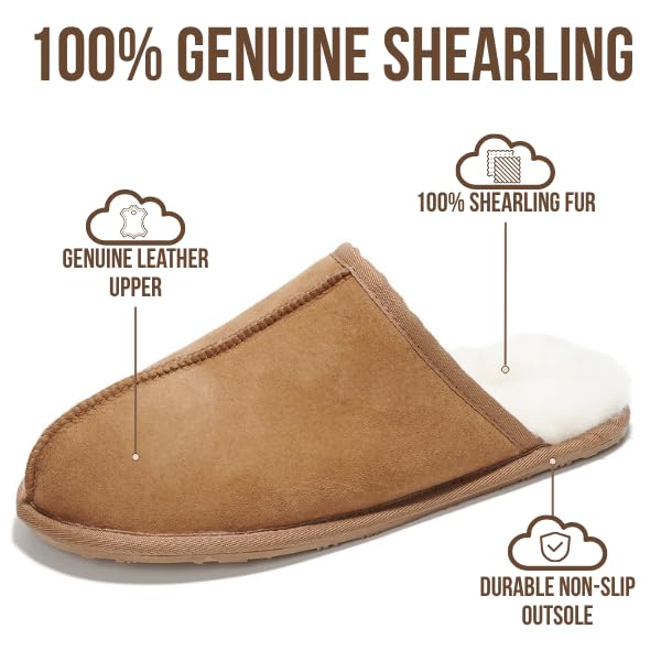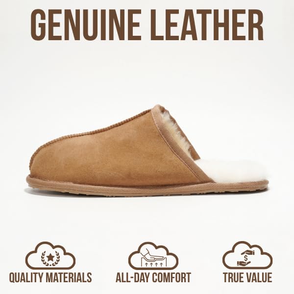 Project Cloud Mens Slippers 100% Genuine Leather and Genuine Shearling Lining – House Slippers for Men with Memory Foam Insole – Lightweight & Non Slip Mens House Shoes (Chill)