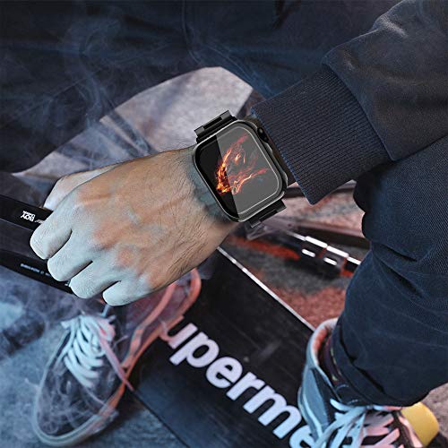 Compatible with Apple Watch Band 49mm 46mm 44mm 45mm 42mm 40mm 38mm 41mm, Stainless Steel iWatch Bands with 2 Pack Tempered Glass Case for Series 11/10/9/Ultra 3 2/8/7/6/5/4/3/2/1/SE for Men