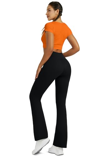 Flare Leggings for Women Yoga Pants with Pockets High Waisted Crossover Flare Leggings Bootcut Casual Yoga Pants