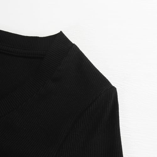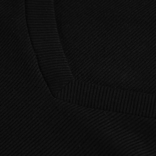 PALINDA Women’s Ribbed V Neck Slim Fitted T Shirts Basic Solid Long Sleeve Layering Tee Tops