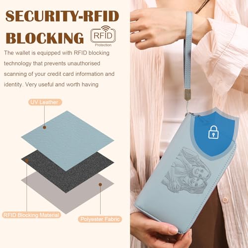 Personalized RFID Wallets for Women – Custom Name & Photo Leather Clutch, Double Zipper Large Capacity Wristlet, Mothers Day Wallet Gift for Mom Wife (BLUE)
