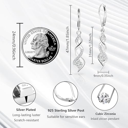 Sterling Silver Drop Dangle Earrings for Women Cubic Zirconia Hanging Dangle Earrings Long Infinity Drop Earring Leverback CZ Earing for Jewelry Gifts