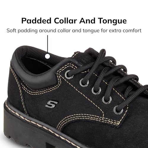 Elevate your professional style with these versatile dress shoes for women. The Parties – Mate Oxford combines classic design with modern comfort features. This bump-toe oxford style showcases a premium leather upper with elegant contrast stitching, padded collar for enhanced comfort, and a cushioned comfort insole that keeps you comfortable throughout your day. Perfect for both formal and casual dress shoes for women, these oxfords feature a flexible traction outsole and a 1 1/2-inch heel for stable, all-day wear.