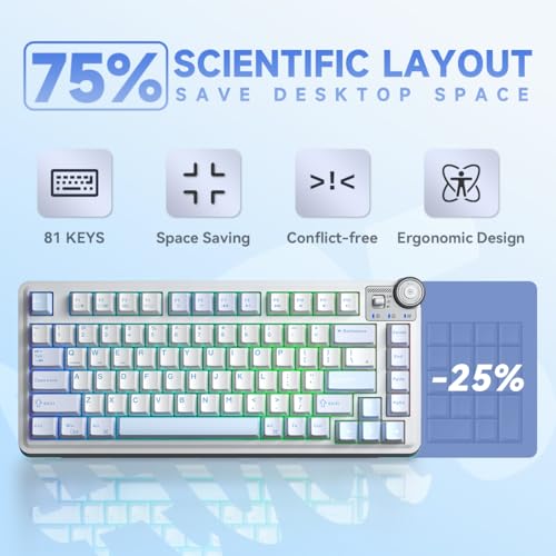 Aula AU75 75% Wireless Gaming Keyboard, Tri-Mode Hot-Swappable Mechanical Keyboard with Control Knob, RGB Backlit, PBT Keycaps, Bluetooth/2.4G/USB-C, for PC/PS5/Mac Gamers (LEOBOG Seiya Switch)