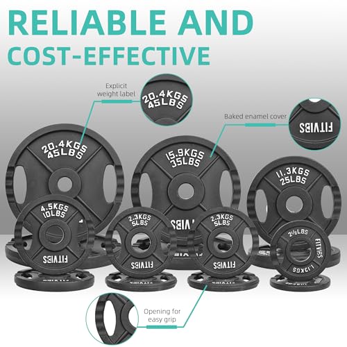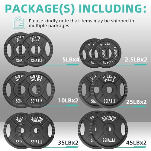 Fitvids Olympic Cast Iron 2-Inch Weight Plates for Strength Training & Weightlifting, 255 Pounds Set, Multiple Packages