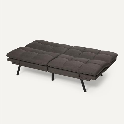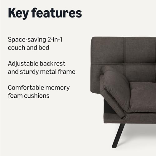 Amazon Basics Futon Sofa Bed, Convertible Memory Foam Sofa Couch Modern Loveseat Sleeper for Small Compact Living Room,Office,Apartment,Dark Grey Linen Fabric