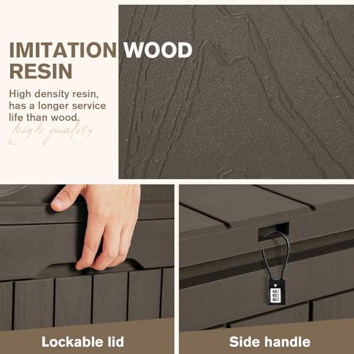 Specification: JUMMICO 31 Gallon Resin Deck Box Waterproof Indoor Outdoor Storage Boxes for Patio Furniture Cushions and Garden Tools (Brown)