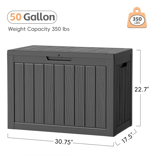 Specification: Outdoor Storage Box, 50 Gallon Waterproof Resin Deck Box, Storage Bin for Package Delivery, Patio Furniture Cushion, Garden Tools, Pool Accessories, Weatherproof and UV Resistant