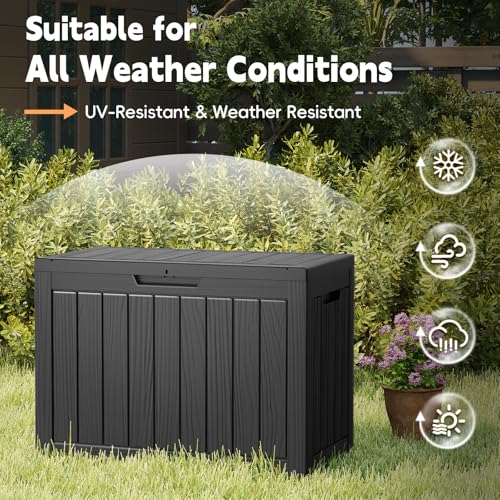 Waterproof and UV Resistant: Made of high-strength resin material, this storage box is waterproof and UV-resistant, and won’t peel, rust, or warp. It reliably safeguards packages, pool supplies, and outdoor items against rain, sun, and dust, keeping them dry and secure.