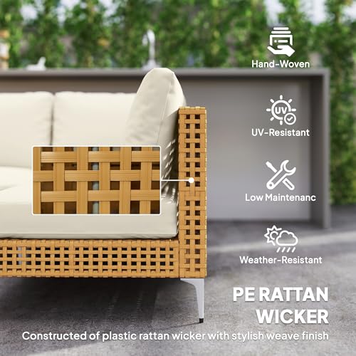 Comfortable Seating: Equipped with 3.9″ thick seat cushions and 7.1″ thick back cushions, this sectional outdoor patio furniture sofa offers exceptional comfort. The removable cushion covers are easy to clean and maintain