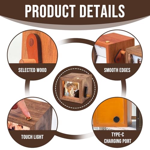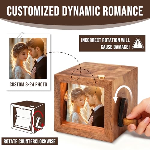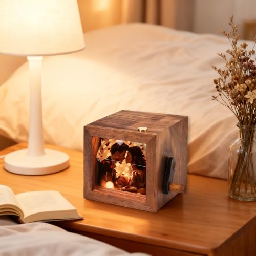Custom Flip Photo Box — Personalized Hand-Crank Photo Flip Book Frame with LED Light, Animated Flipbook Album & Memory Box | Unique Christmas & Birthday Gifts for Couples & Family