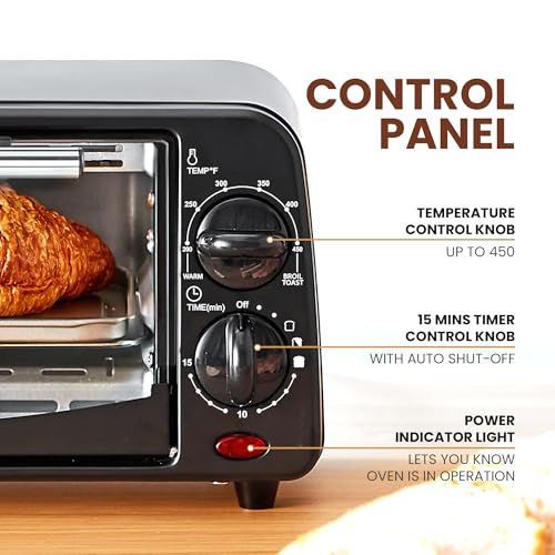 ADJUSTABLE TIMER: The 15 min timer is perfect for toasting and warming up food for a quick and easy snack or breakfast.
