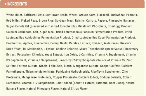 A healthy, all-natural blend of crop seeds, grains, dried fruits, dried vegetables and nutritionally enriched extruded pellets
