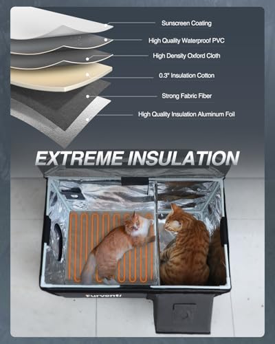 𝐖𝐞𝐚𝐭𝐡𝐞𝐫𝐩𝐫𝐨𝐨𝐟 & 𝐈𝐧𝐬𝐮𝐥𝐚𝐭𝐢𝐨𝐧-The heated cat house for outside, made of 6 layers of waterproof and insulating materials, can protect cats from any extreme outdoor conditions.