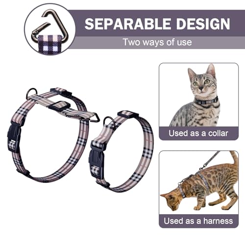 Hikiko Cat Harness and Leash Set Escape Proof Adjustable Walking Travel Soft Kitten Harness for Small Medium Large Cats (Khaki Plaid, S)