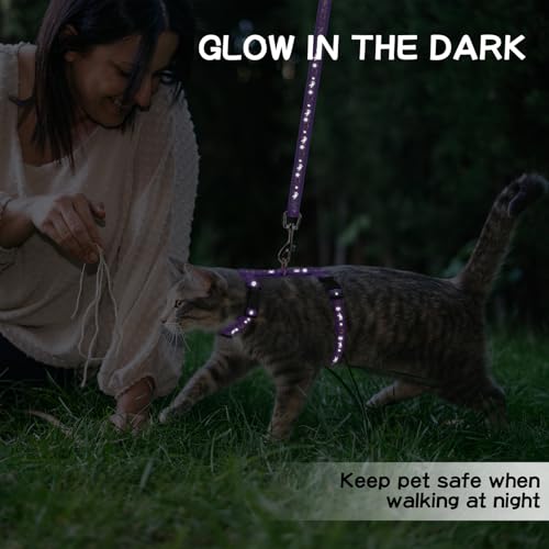 PAWCHIE Cat Harness with Leash and Collar Set – Escape Proof Adjustable H-shped Cat Harness with Star and Moon Pattern Glow in The Dark for Kitty Outdoor Walking