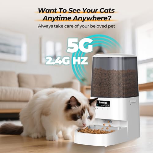 Automatic Cat Feeder with App Control, 5L Food Dispenser for Cats and Small Dogs, 2.4/5G Wi-Fi, Dual Power, Programmable Portions, Anti-Jam & Fresh-Lock, Stainless Steel Bowl, Easy to Clean
