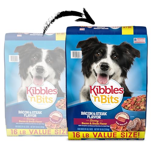 Kibbles ‘n Bits Dry Dog Food, Savory Bacon & Steak Flavor for Adult Dogs 16 lb. Bag