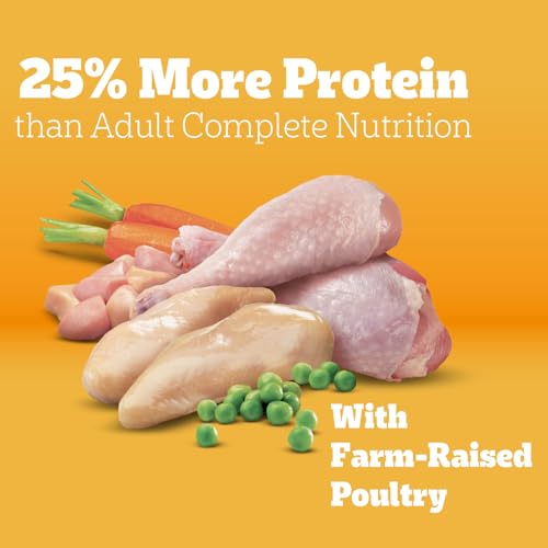 Made With Real Meat: This dry dog food recipe is made with real meat and 25% more protein compared to Adult Complete Nutrition, giving your dog a familiar flavor they will love